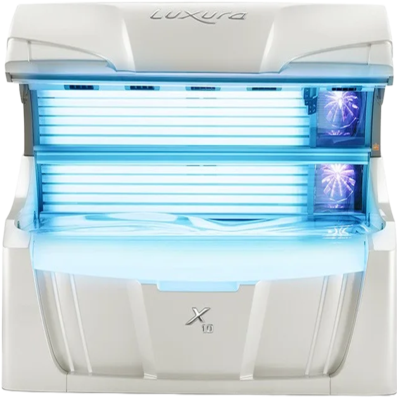 12-minute high-intensity UVB tanning bed designed for strong, even color and ideal for building a base tan.